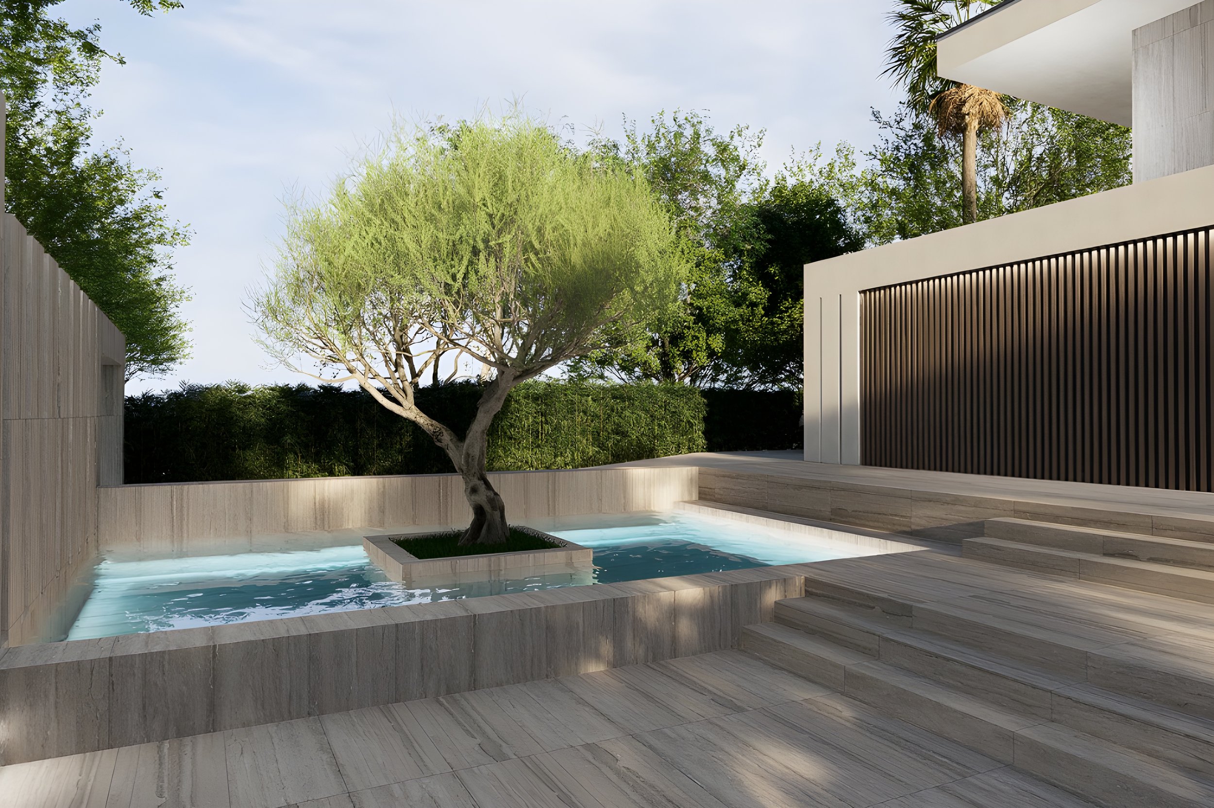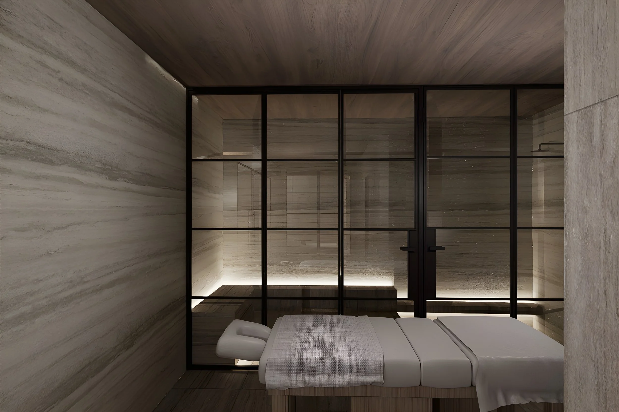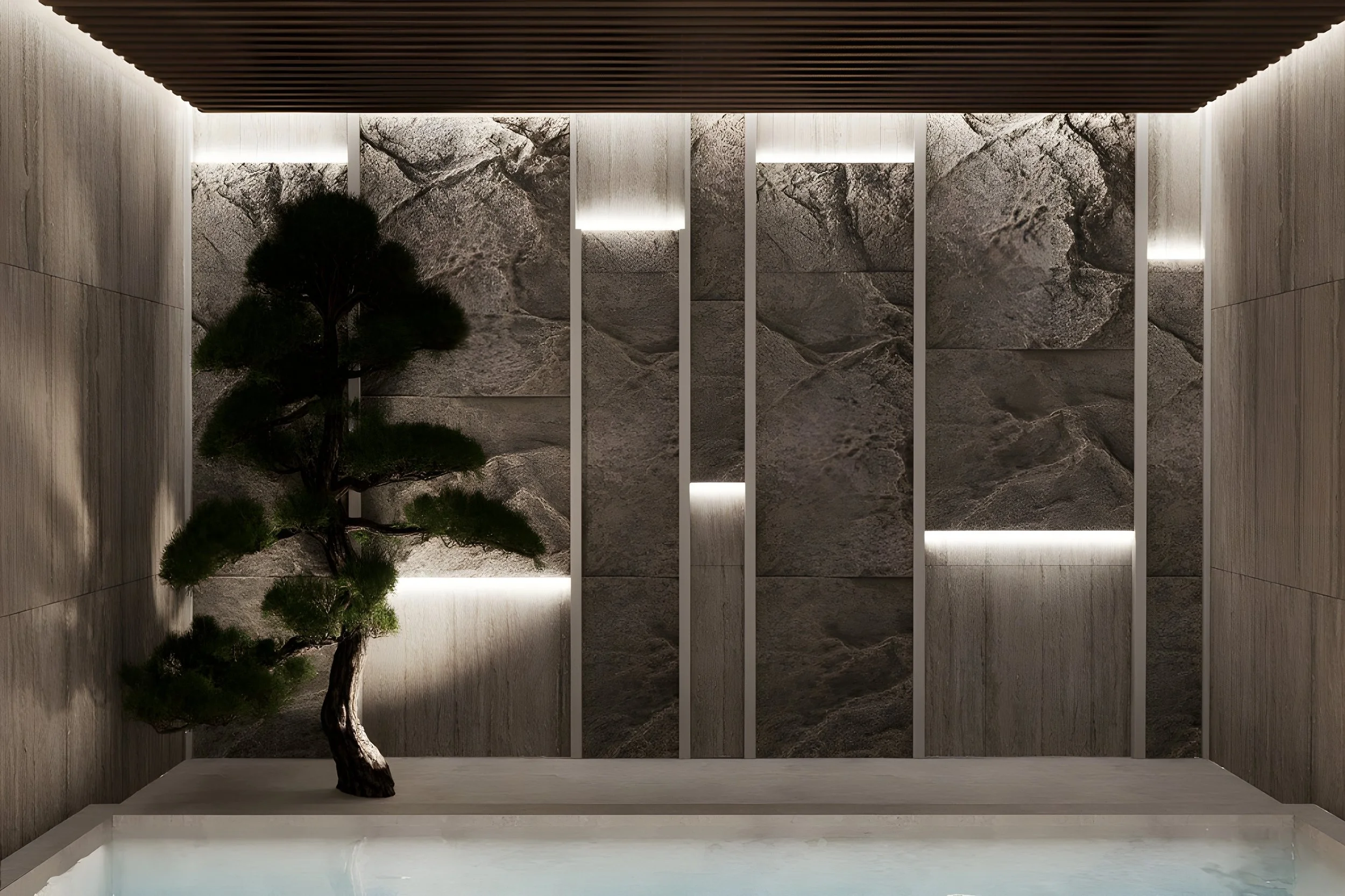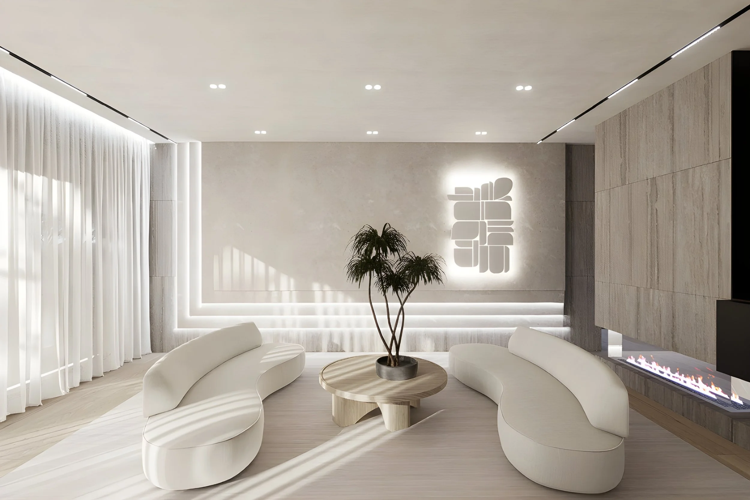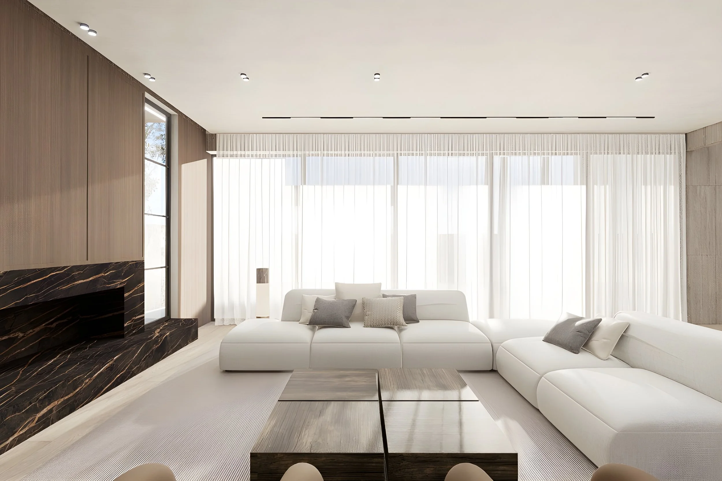ALPINE is situated in the iconic Flats of Beverly Hills, a neighborhood where homes are admired not just for their architecture but for their presence on the street. The home is carved in elegance — a monolithic composition of warm, vein-cut travertine that anchors it in timeless serenity. The architecture is contemporary yet eternal, with linear geometry, floating planes, and expansive glazing. At the heart of the home are the kitchens — not just functional, but sculptural. Oversized islands emerge like art pieces from the wood floor, their volumes appear as if carved from a single block. Gallery-like. Iconic. Designed for conversation, creation, and quiet moments alike.
