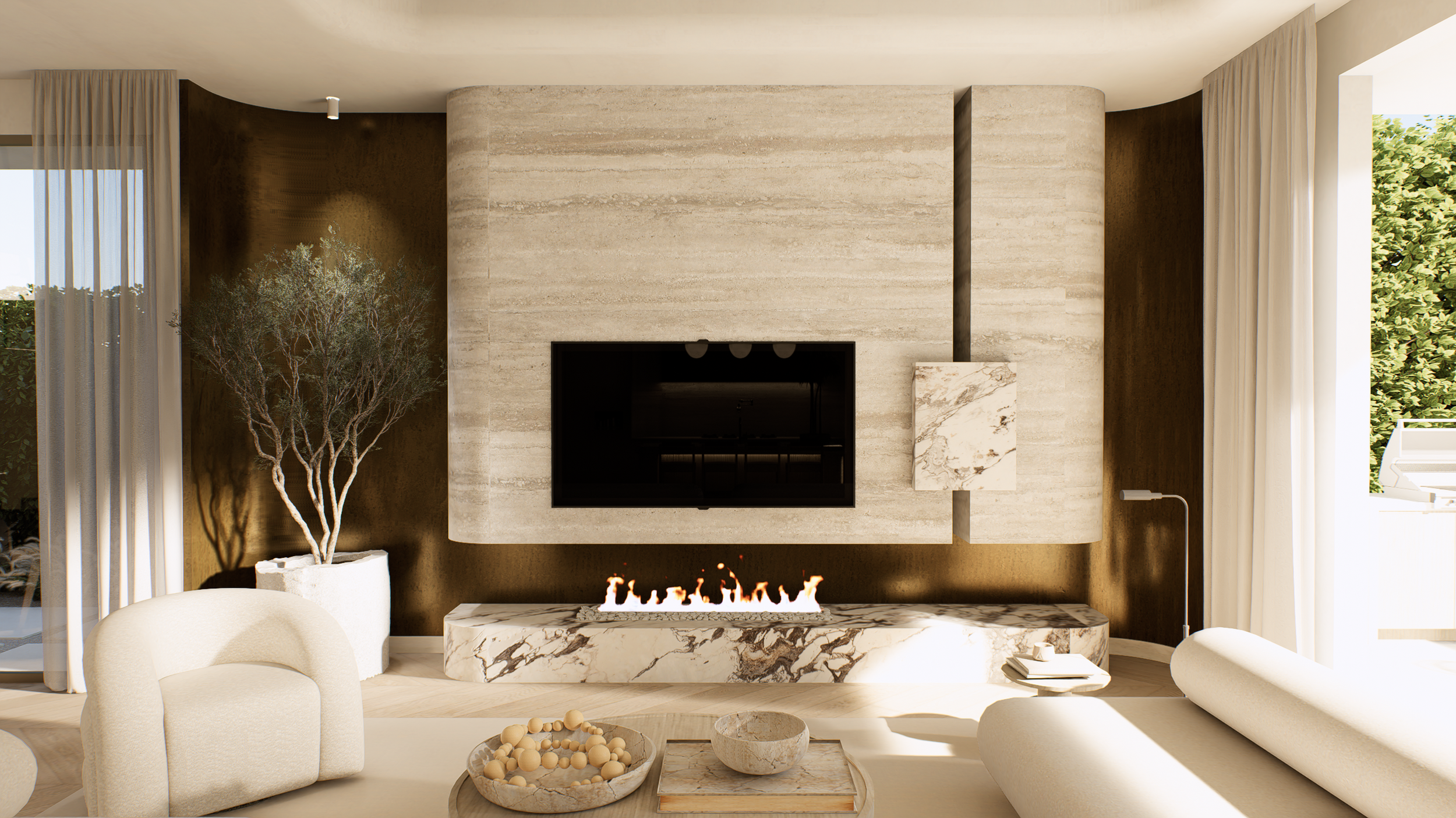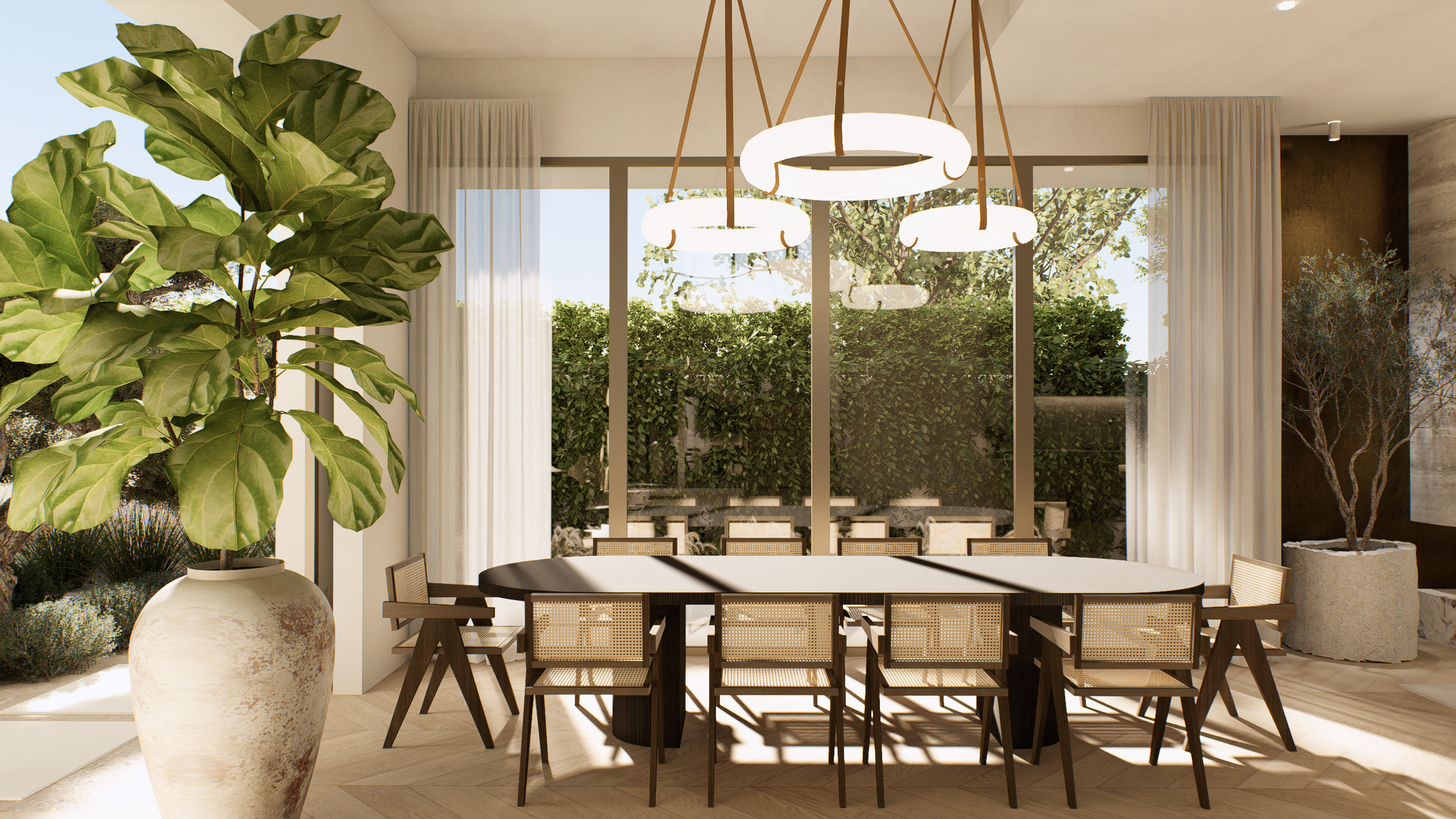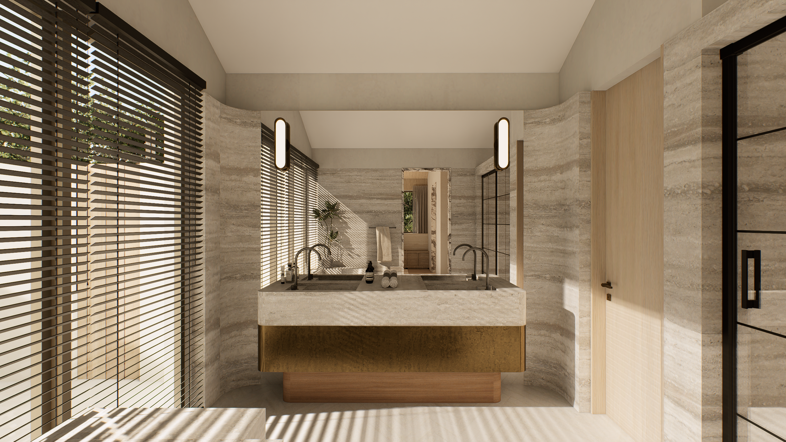 BLOOMFIELD, is a modern contemporary Studio City residence designed with clarity and restraint. Soft curves run through the interior, giving the home a smooth, continuous flow. Brass elements brings a sense of richness and intention—adding significant contrast to the spaces and highlight a soft glow without feeling flashy. Full-height pocket doors open directly to a private courtyard, letting light and landscape shape the living spaces. Every element is purposeful, warm, and refined—resulting in a home that feels open, calm, and confidently luxurious in the way only true California design can be.