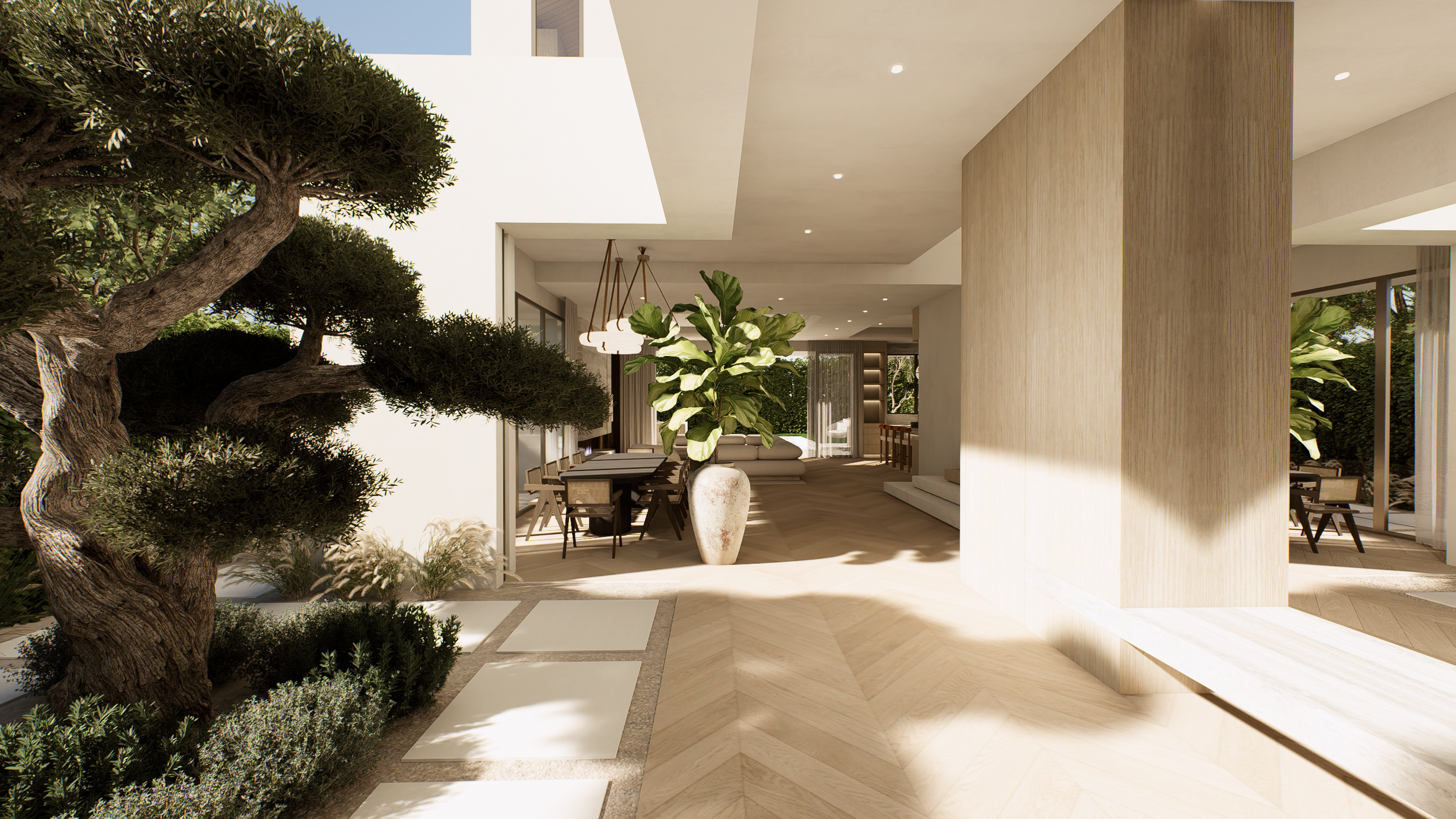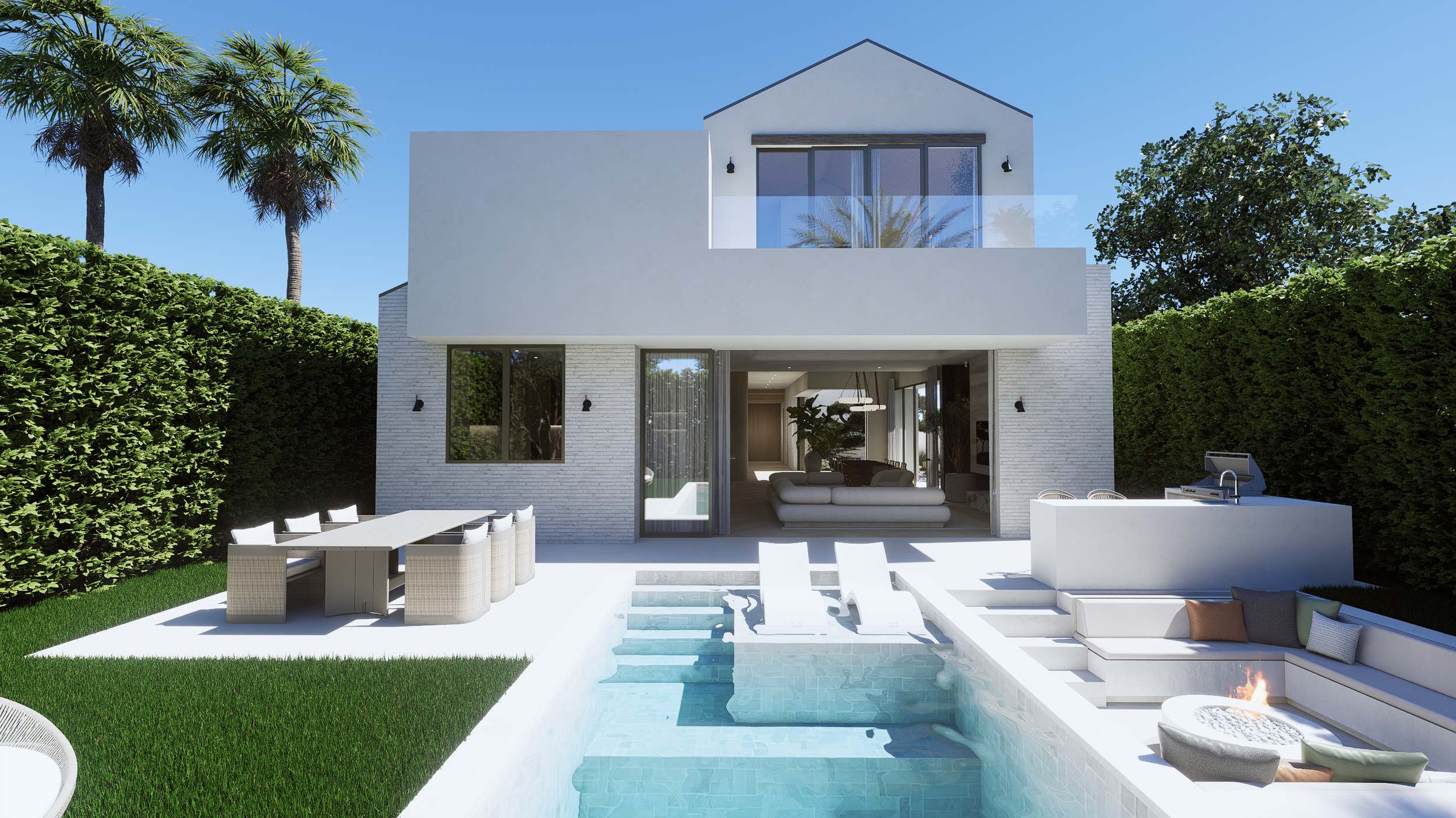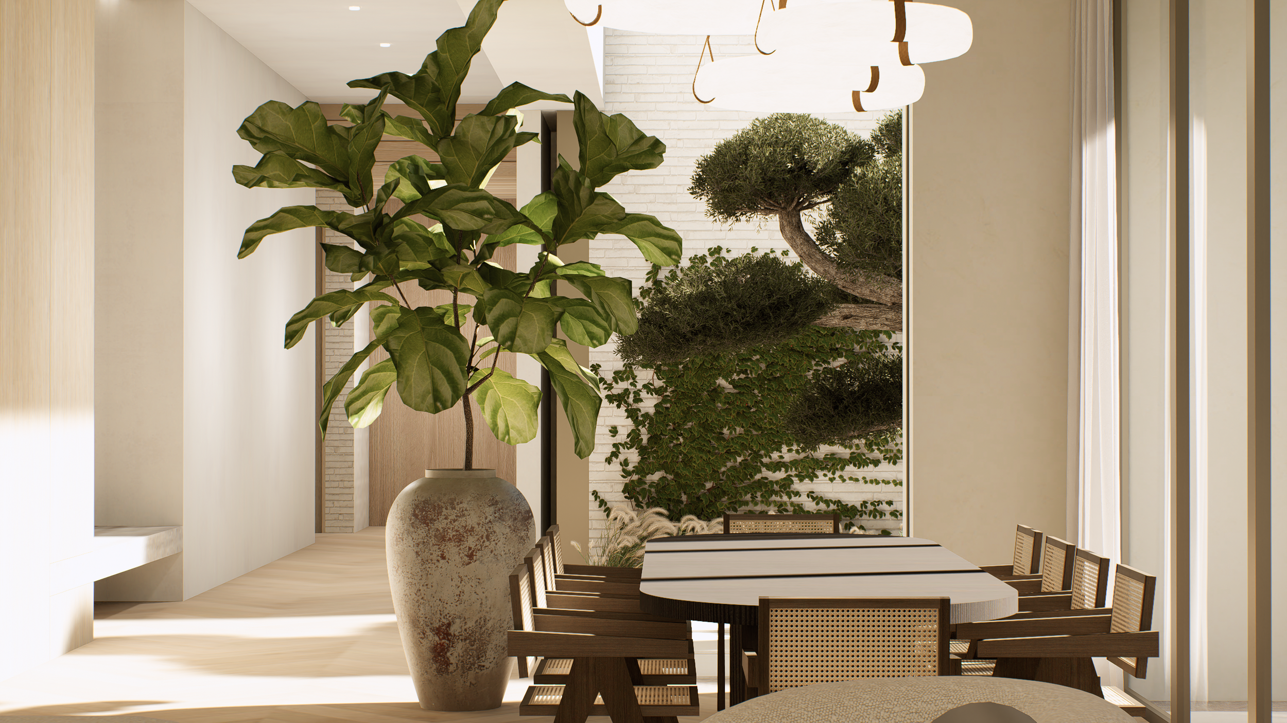 BLOOMFIELD, is a modern contemporary Studio City residence designed with clarity and restraint. Soft curves run through the interior, giving the home a smooth, continuous flow. Brass elements brings a sense of richness and intention—adding significant contrast to the spaces and highlight a soft glow without feeling flashy. Full-height pocket doors open directly to a private courtyard, letting light and landscape shape the living spaces. Every element is purposeful, warm, and refined—resulting in a home that feels open, calm, and confidently luxurious in the way only true California design can be.
