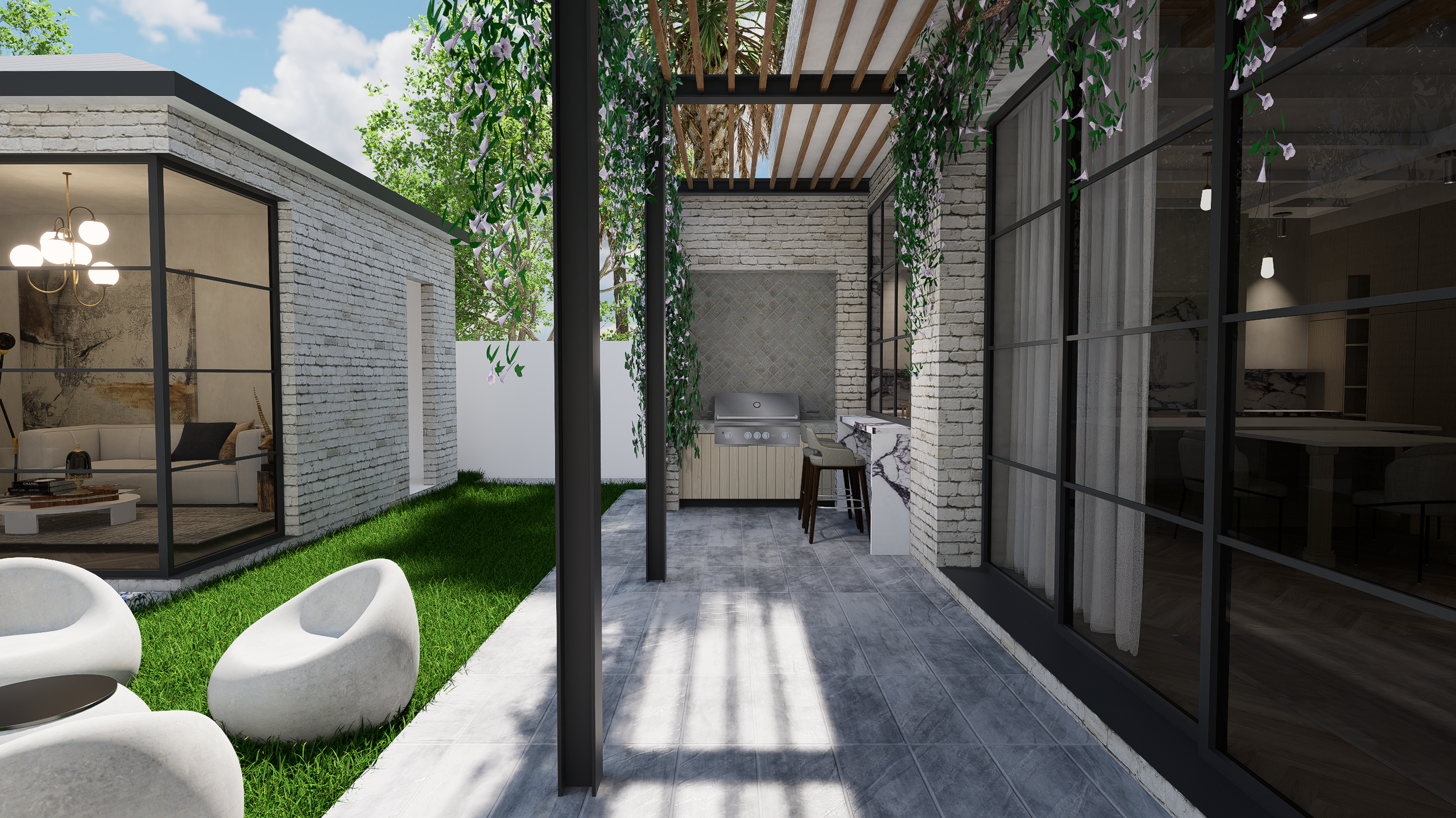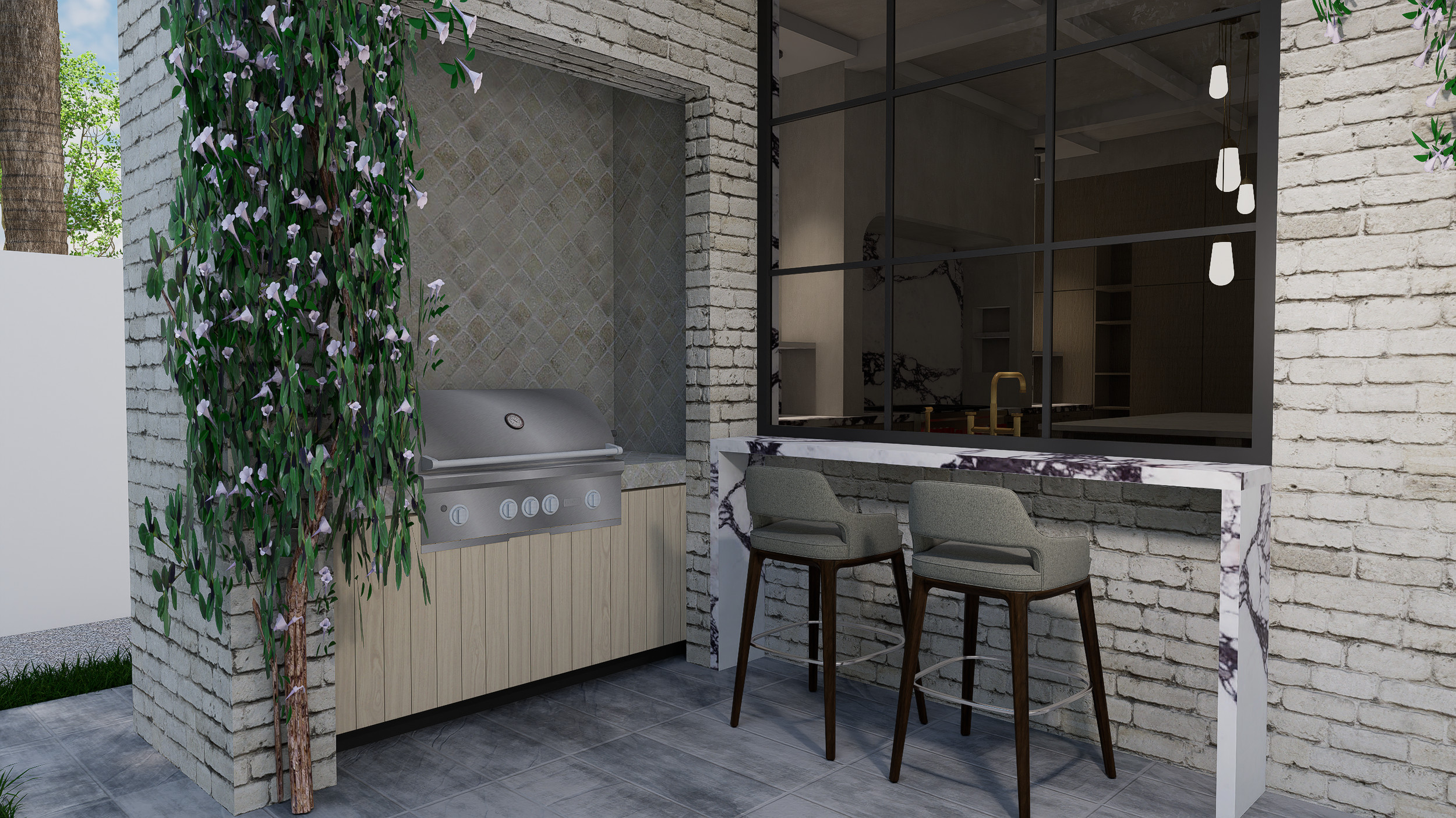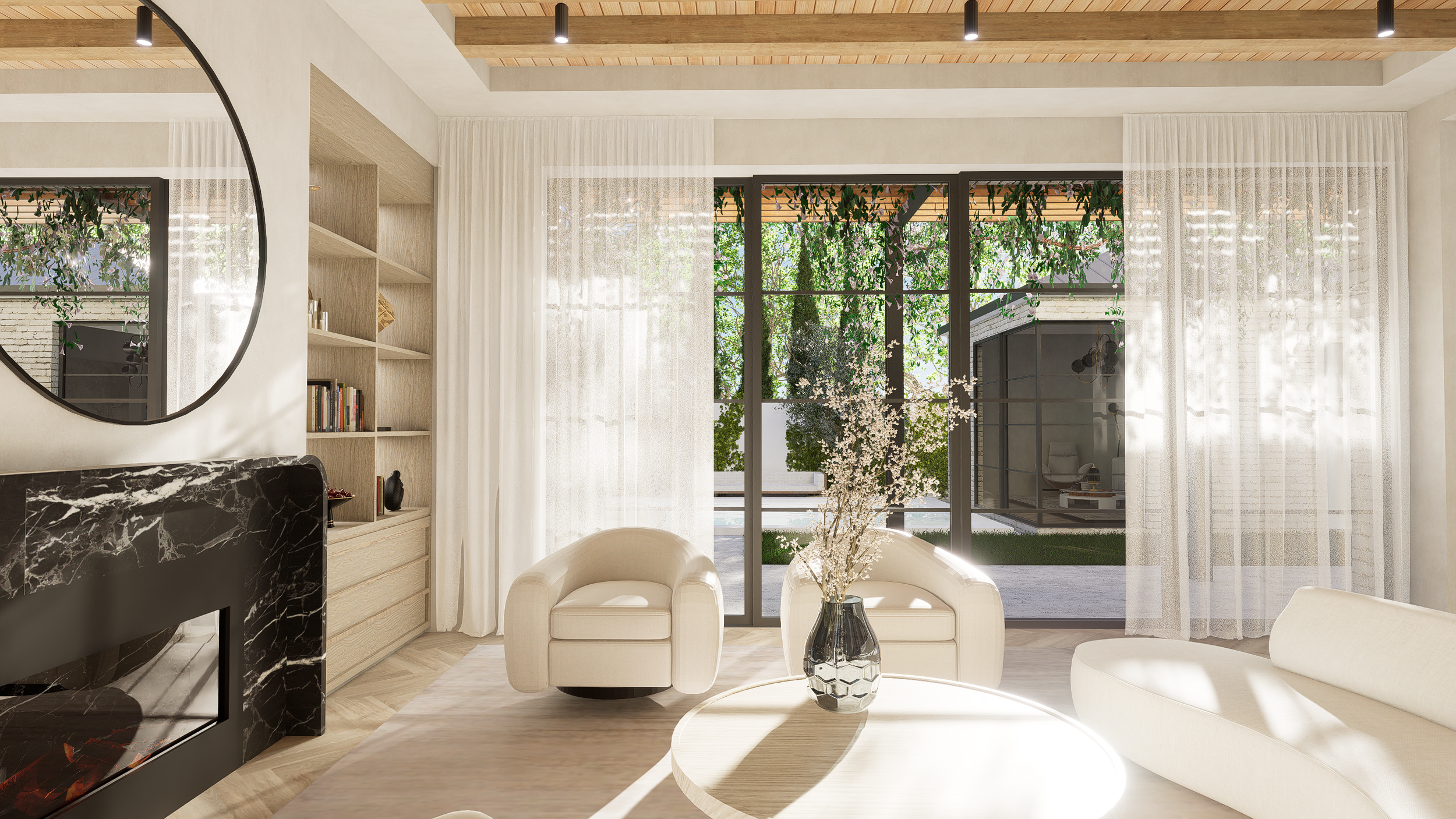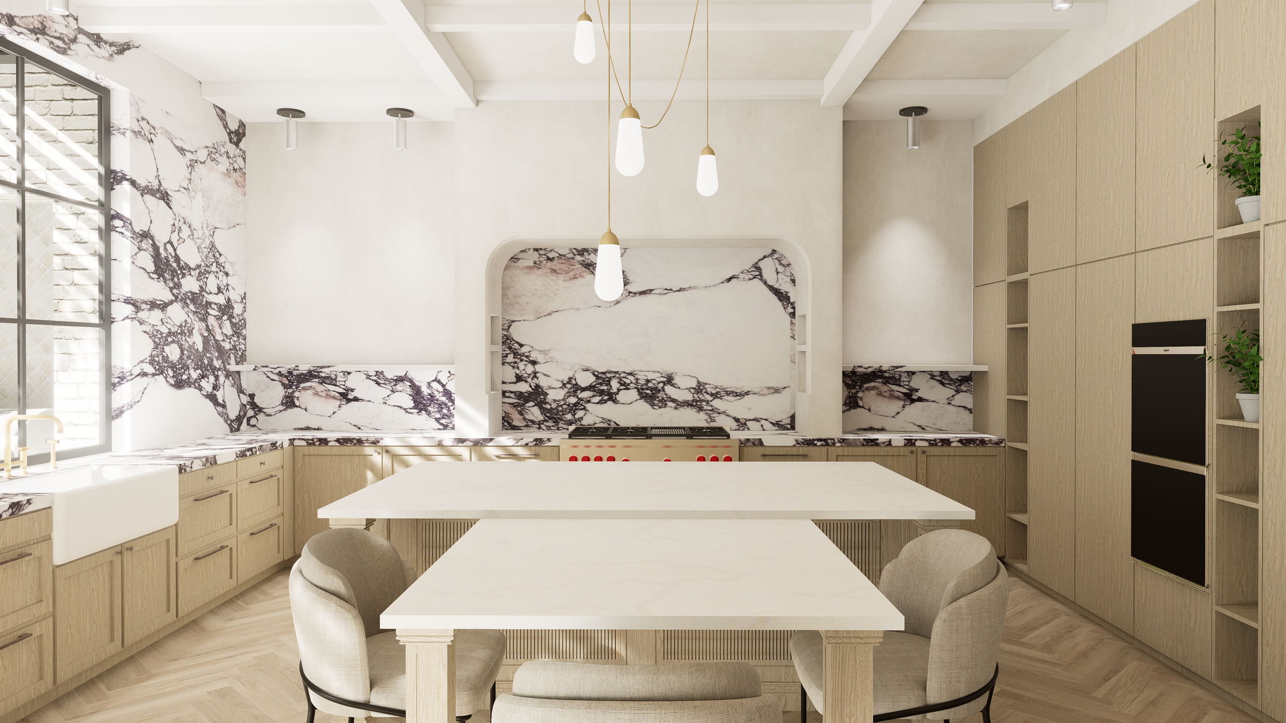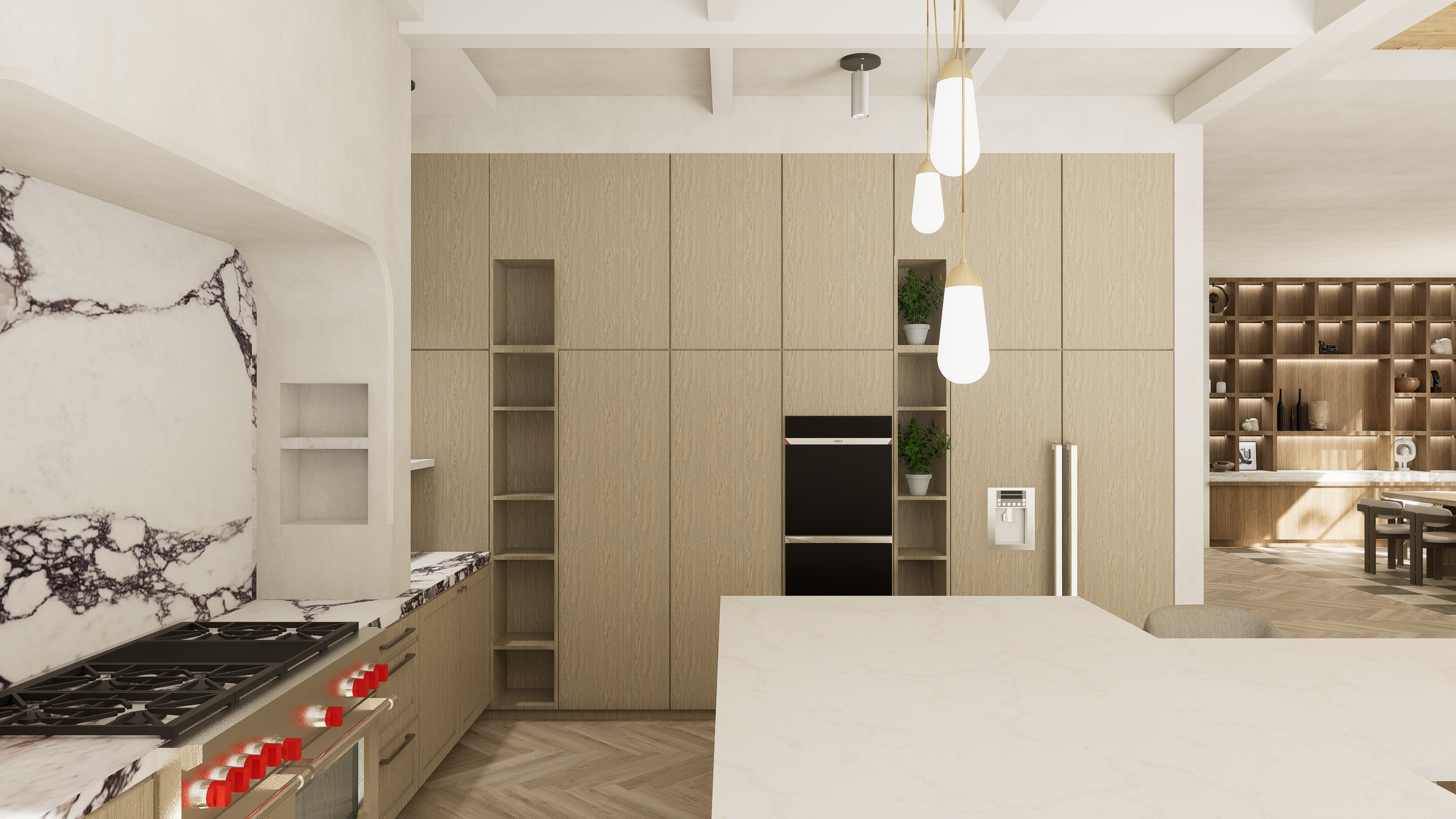 LAUREL, located in one of West Hollywood’s most coveted neighborhoods, this soft contemporary home balances warmth and sophistication through a curated blend of wood, natural plaster, and effortlessly light furnishings. The interiors are airy yet grounded, with materials chosen to age beautifully and feel lived-in from day one. A striking stone checkered floor anchors the dining room and wine cellar, adding visual rhythm and subtly defining the space within the open plan. Outside, the backyard is built for laid-back luxury — a chill pool house, full outdoor kitchen, and shaded cabana create the perfect setting for weekend gatherings and golden hour entertaining.